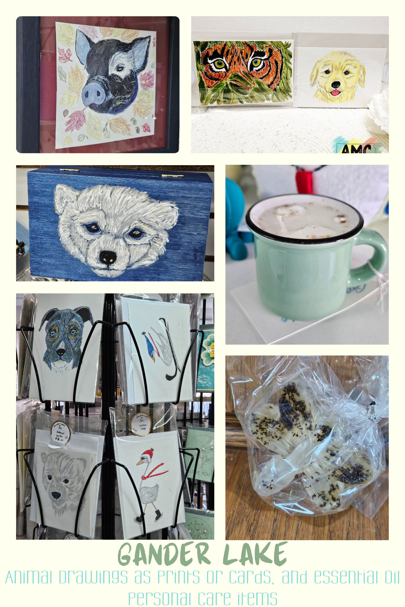 Gander Lake is the creative work of Katherine, an artist who brings her love of animals and whimsy to life through illustration and handmade goods. She creates original drawings of animals and cartoon characters, which are then transformed into stickers, cards, and art prints.