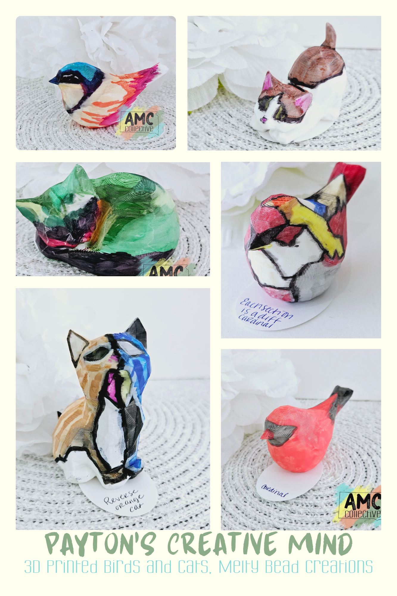 3D Printed Birds and Cats Painted by Payton
