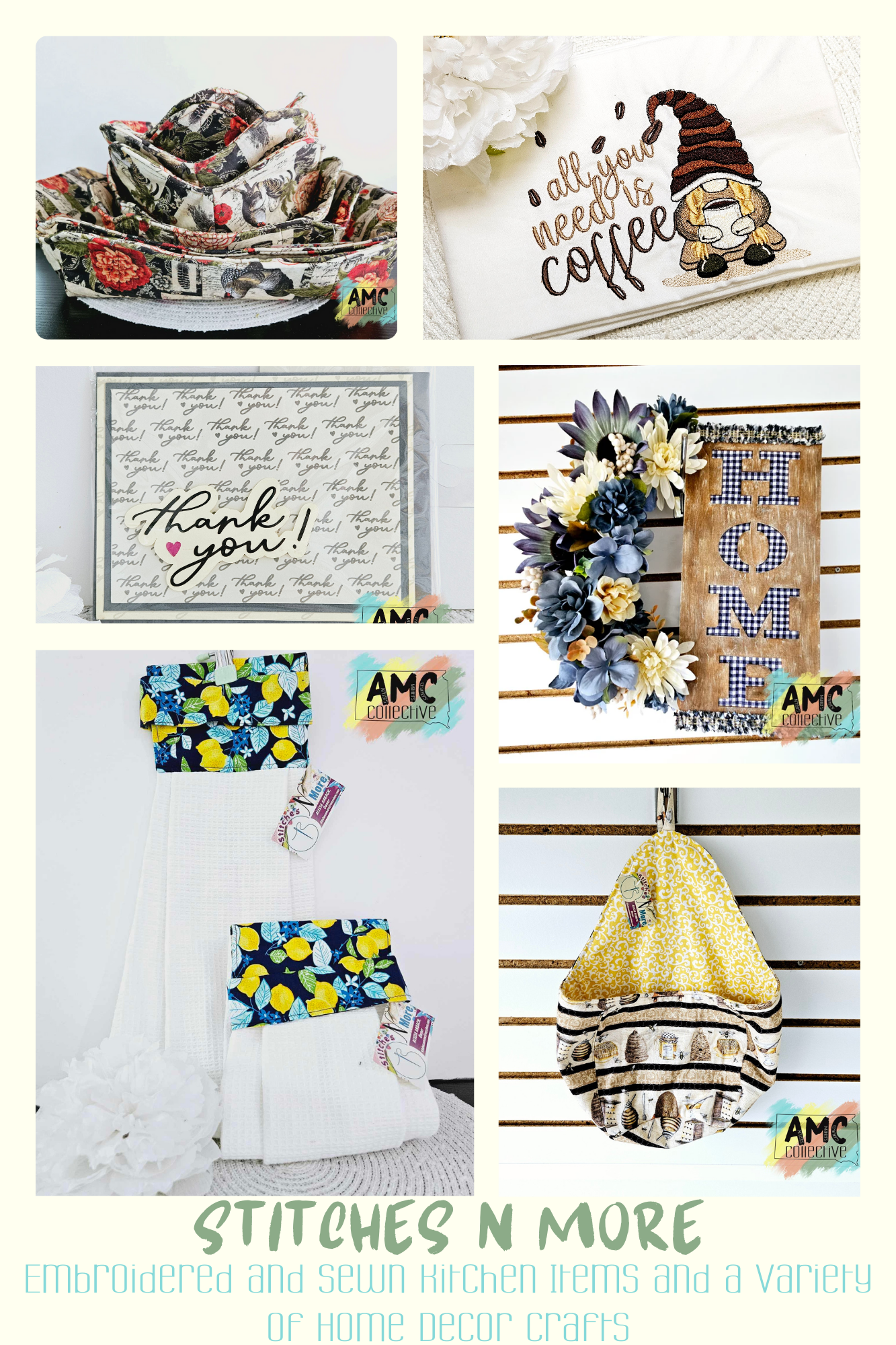 Alecia, the maker behind Stitches N More, brings over 30 years of sewing experience and a deep love for crafting to everything she creates. Working alongside her mother, this mother-daughter duo combines traditional skills with creative inspiration to produce embroidered towels, fabric bowl holders, paper crafts, and more—each piece thoughtfully designed and one of a kind.