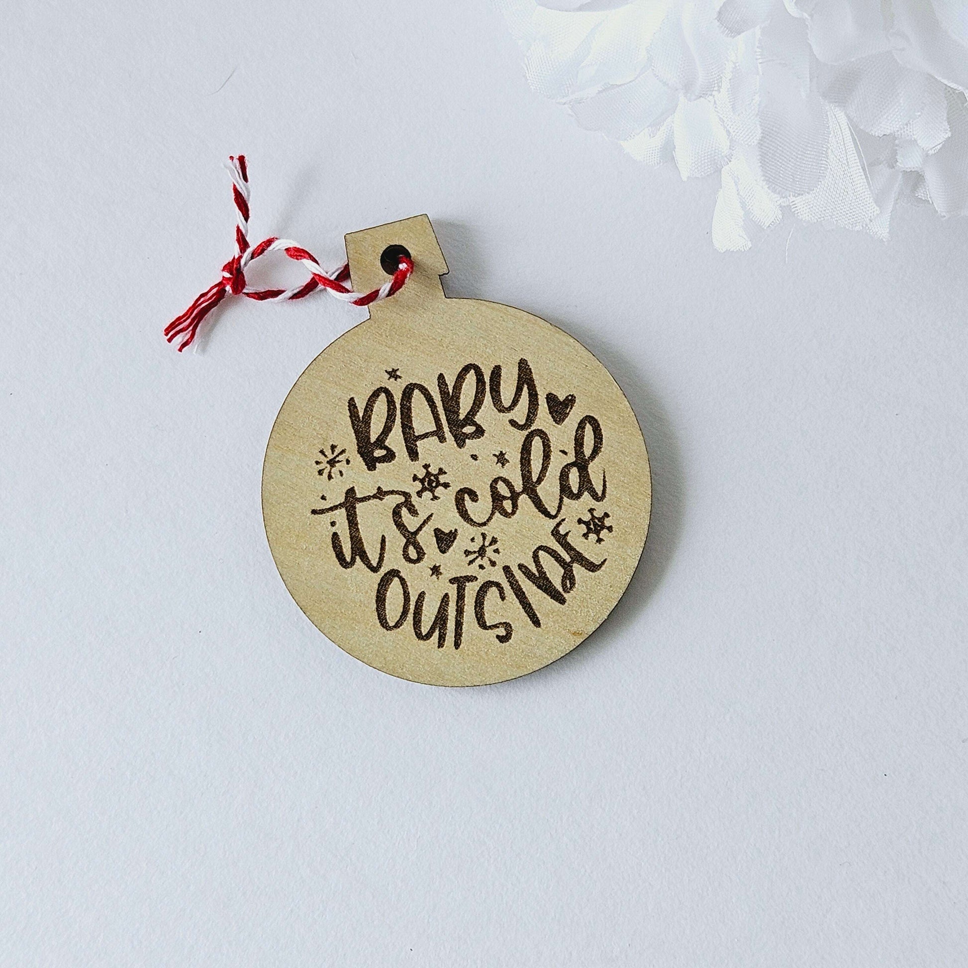 2.5 inch diameter engraved Christmas ornament with ribbon hanger. Ribbon hanger color will vary.