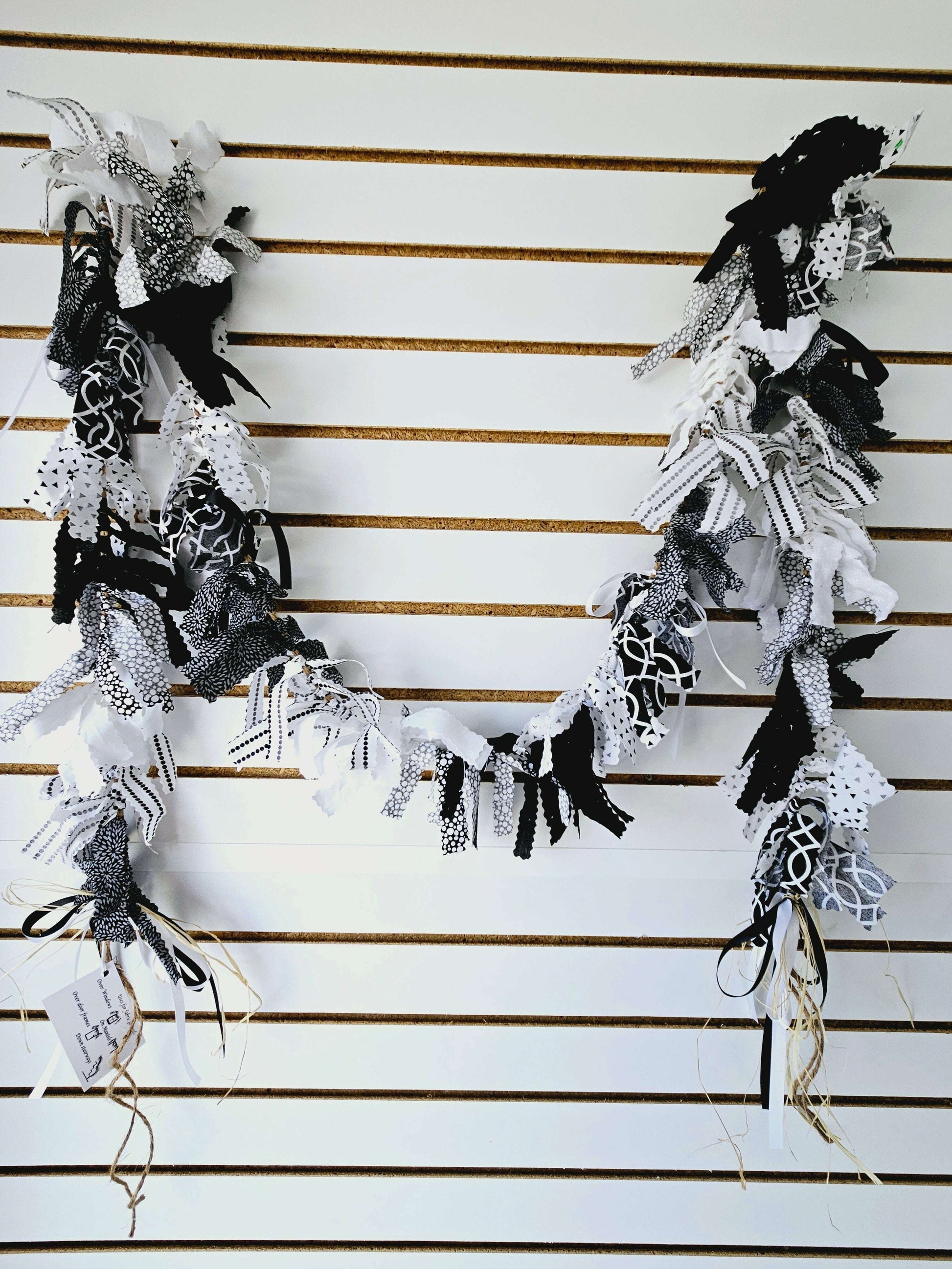 Add a vibrant touch of color to your home with a fabric garland. Perfect for mantles, staircases, or windows, this fabric garland is not only a stylish decoration, but can also be used to liven up parties or add a playful touch to a child's room. Elevate your space with this unique and versatile piece.