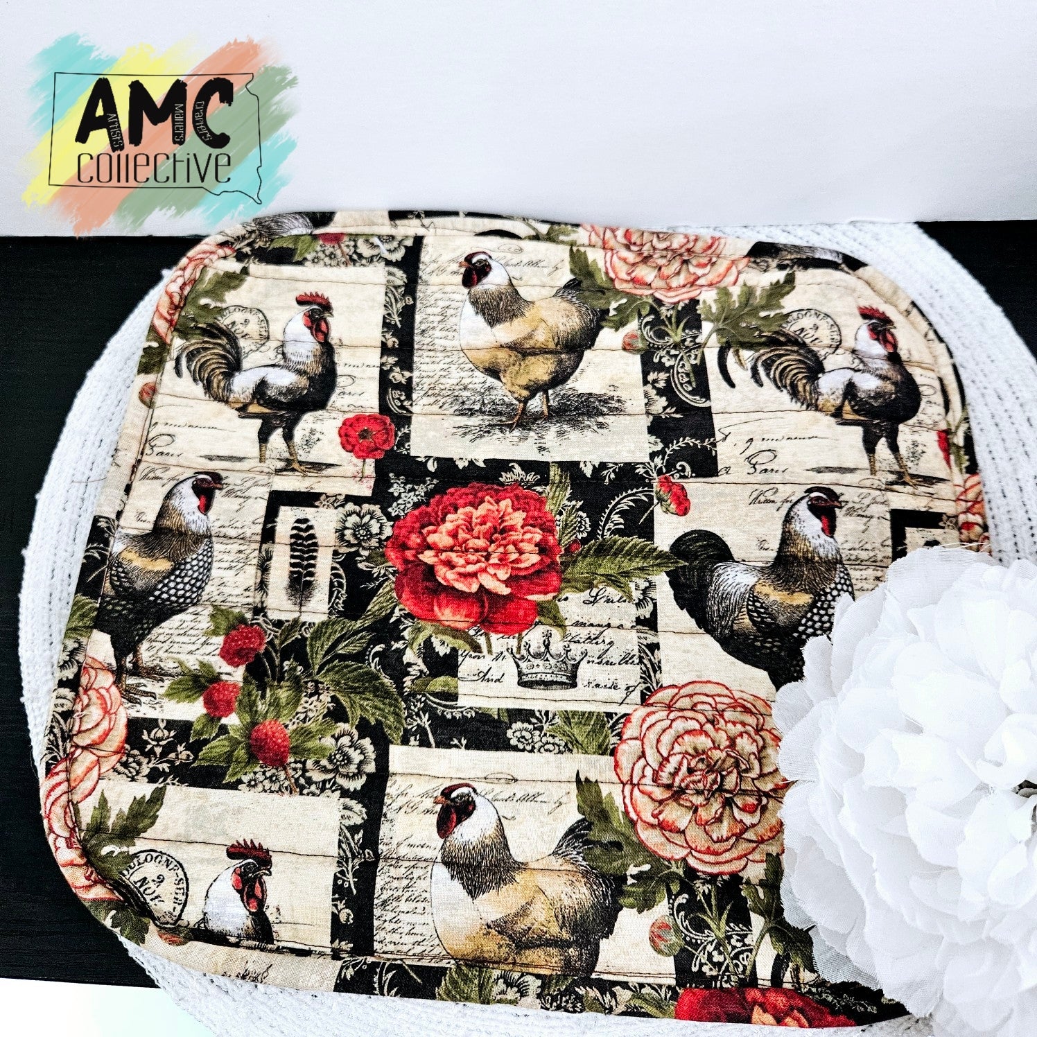 Protect your tables from hot dishes with this chicken print trivet, perfect for all your table setting requirements.