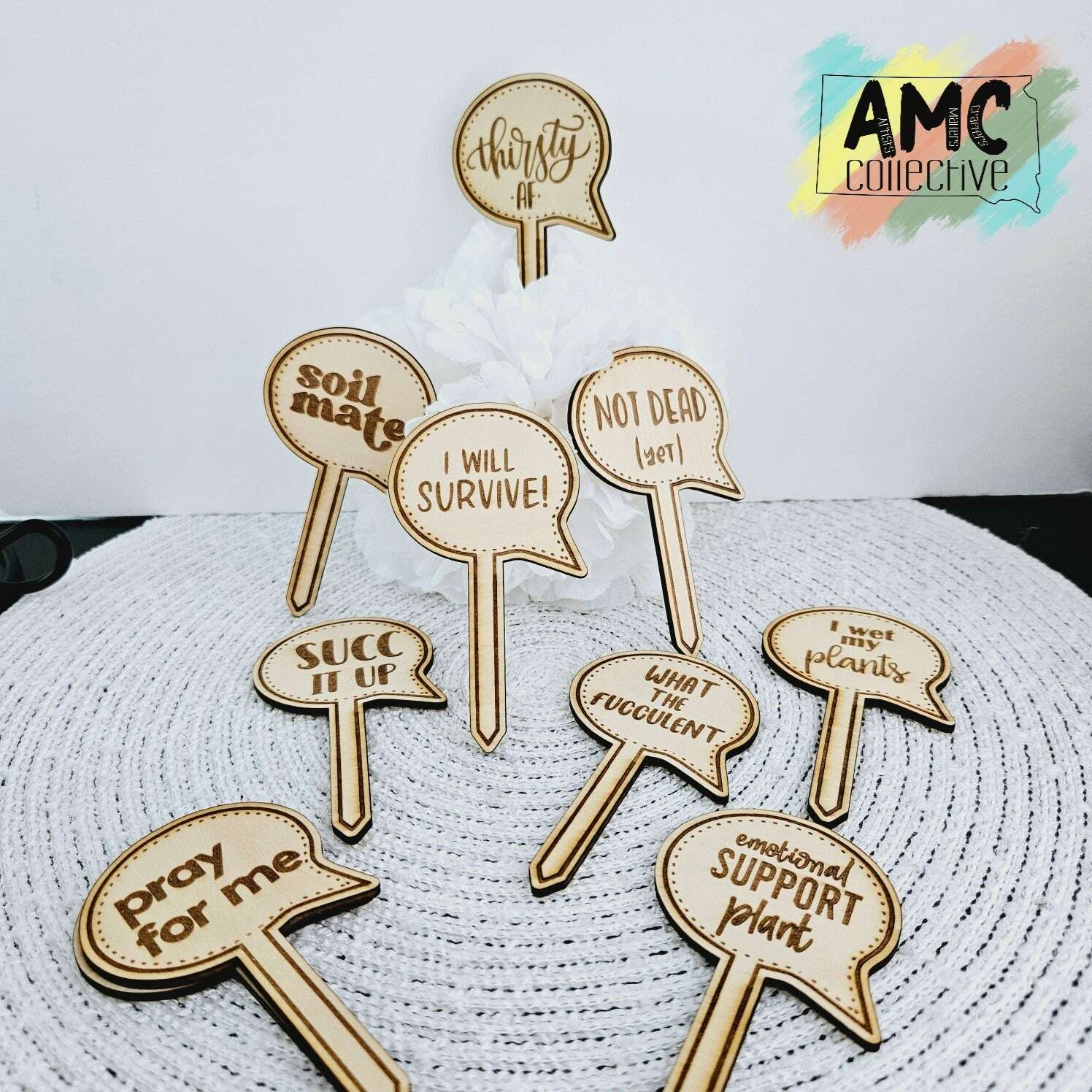 Elevate your garden game with our Speech Bubble Plant Stakes. Made from high-quality wood, these stakes are both durable and whimsical. Engraved with witty plant puns, they are sure to bring a smile to your face while providing sturdy support for your plants. Perfect for any plant lover or garden enthusiast.