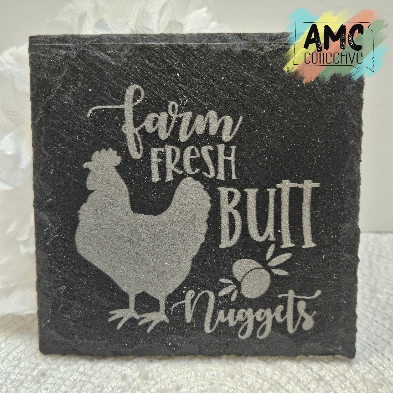 Farm Fresh Butt Nuggets Engraved Slate Coaster