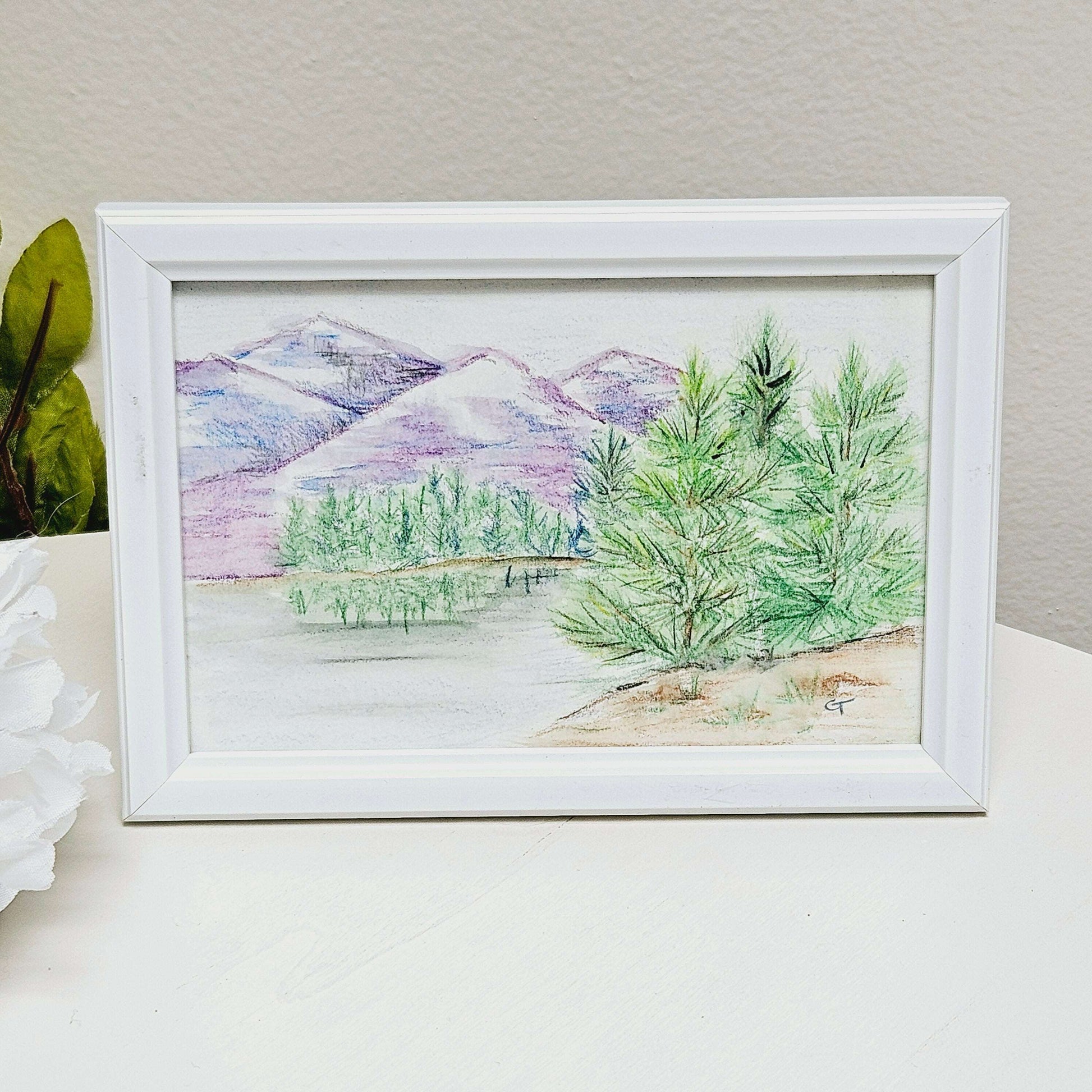 Framed Drawing of Mountain-scape