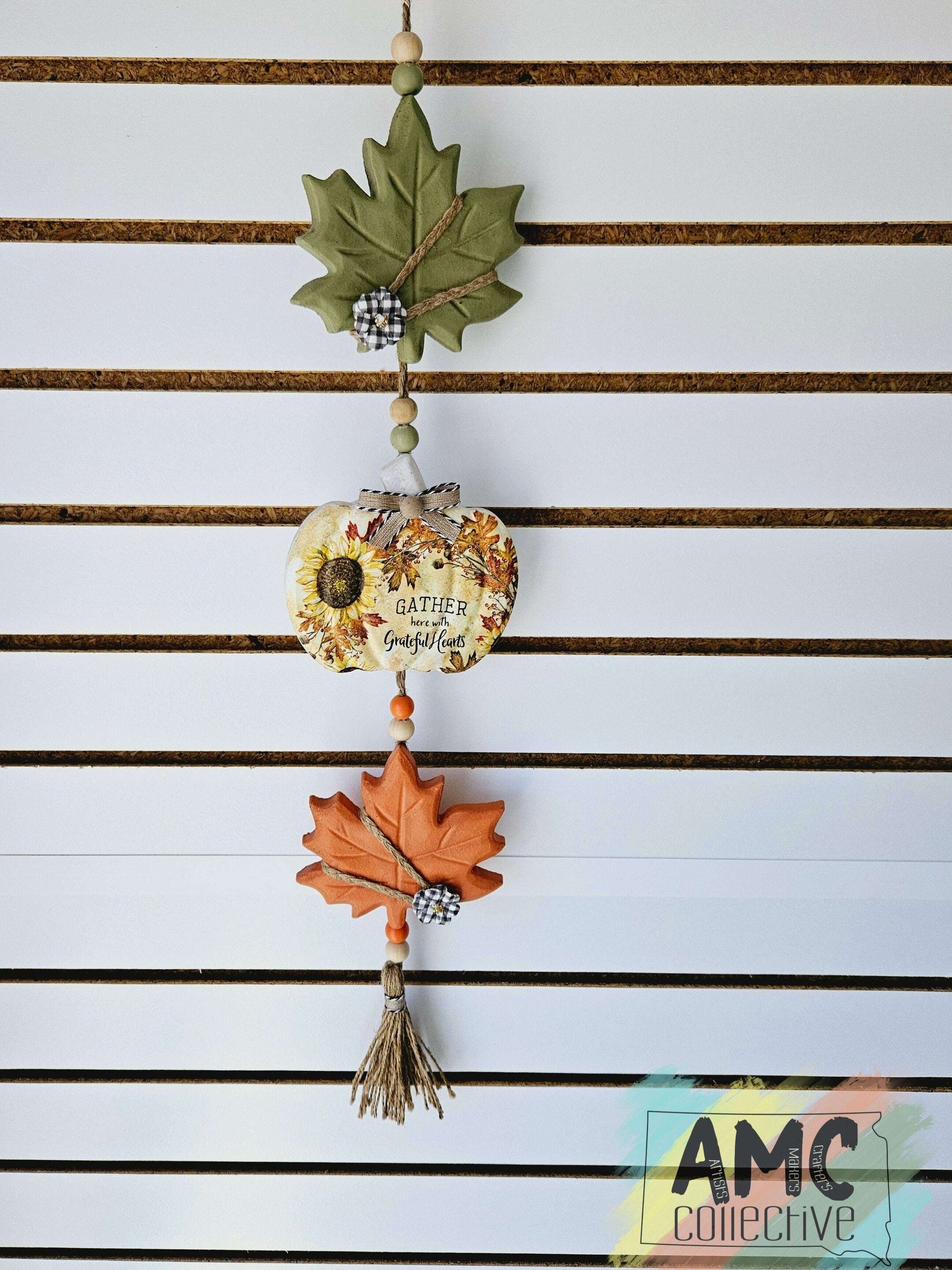 Elevate your fall home decor with our Gather Autumn Wall Decor. This charming piece features a festive pumpkin design with the uplifting phrase, "gather here with grateful hearts". Perfect for creating a warm and welcoming atmosphere this season.