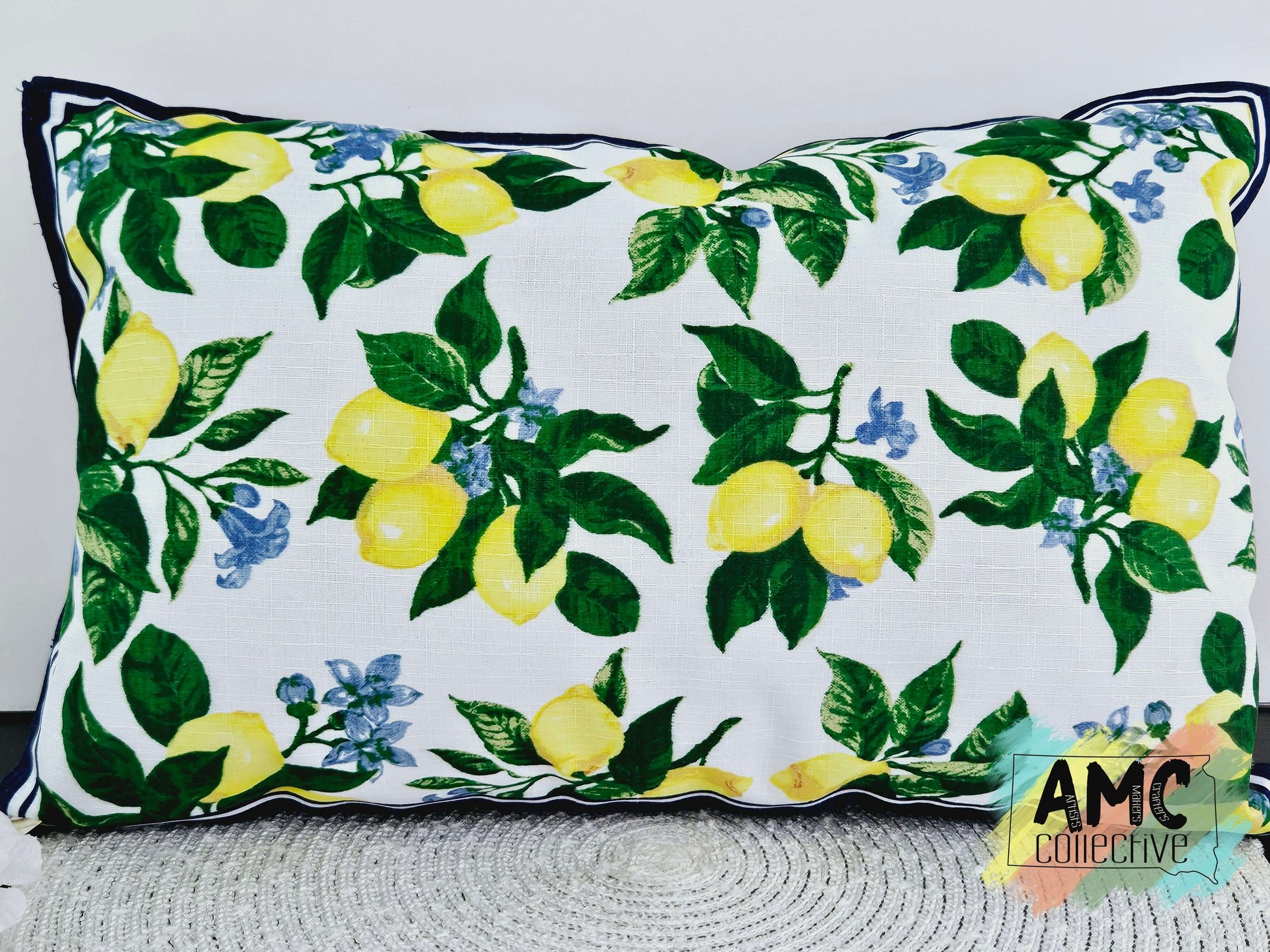Introducing the Lemon Pillow! This fun pillow features a lemon pattern and is handmade for extra hominess. Rest your head and add a pop of zesty style to your room with this homemade pillow.