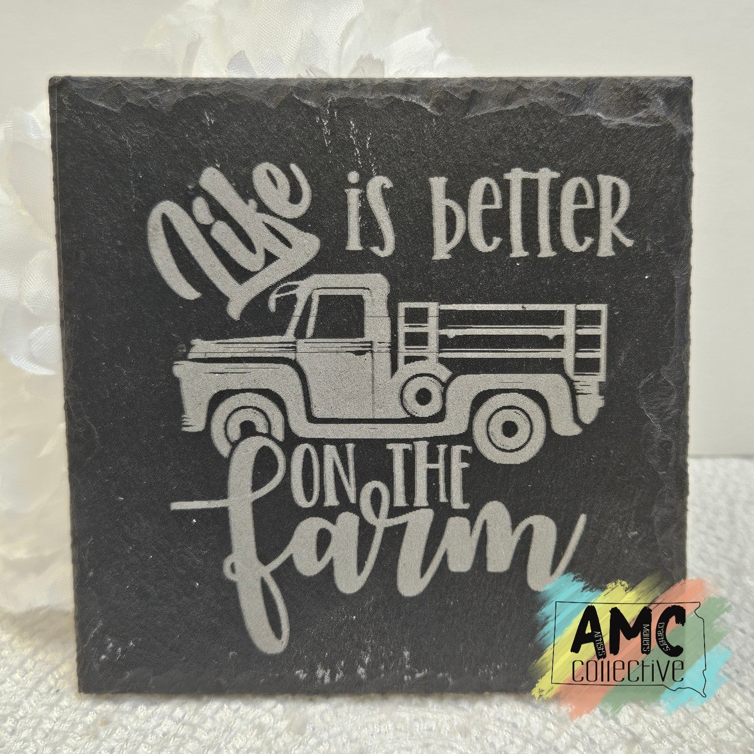 Life Is Better Farm Engraved Slate Coaster