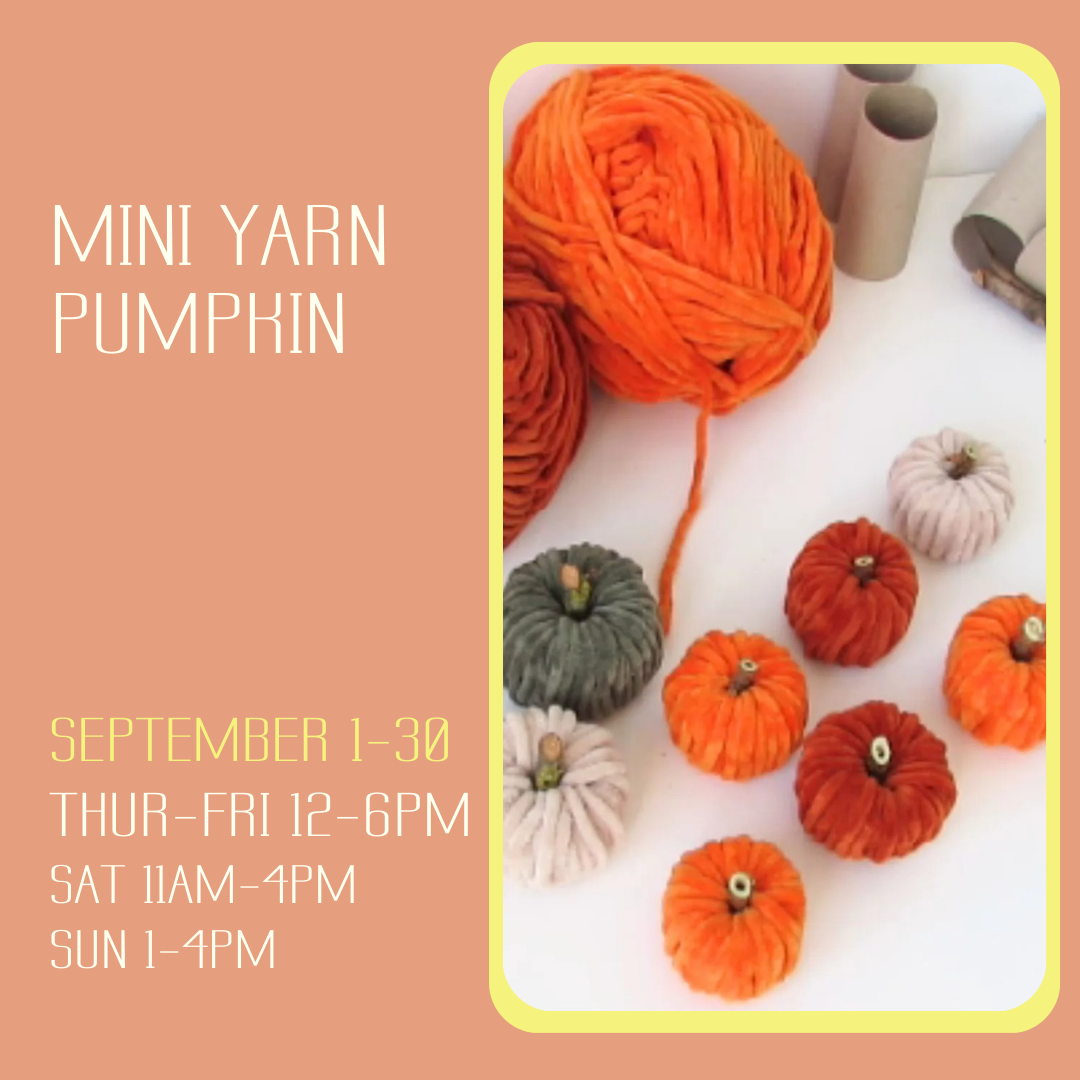 Create your own mini pumpkins with yarn and toilet paper rolls! A bit of hot glue brings it all together for an adorable seasonal decoration. Punch card eligible. Great for kids and adults alike! 🍁