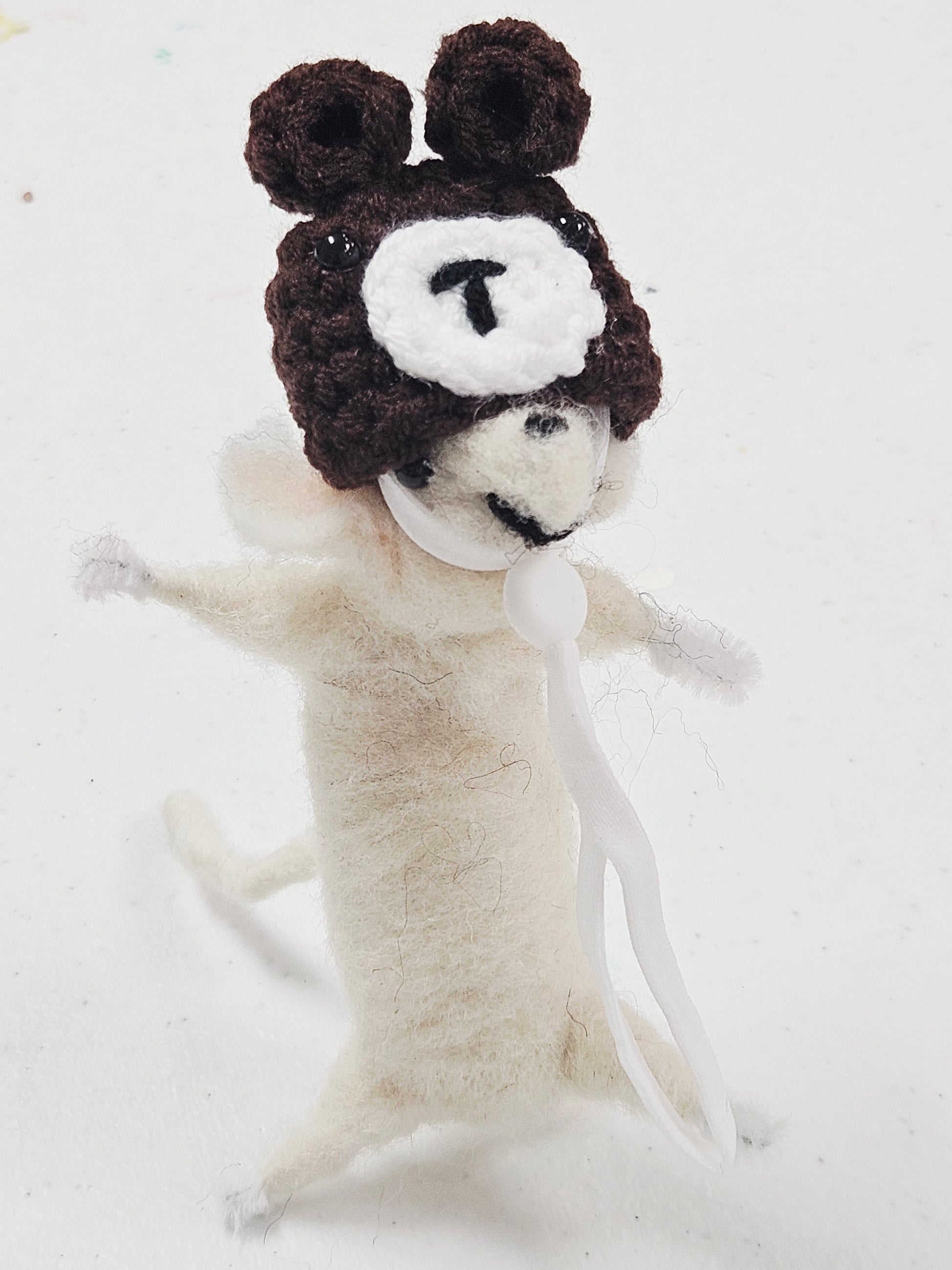 Needle Felted Mouse with Crochet Teddy Hat