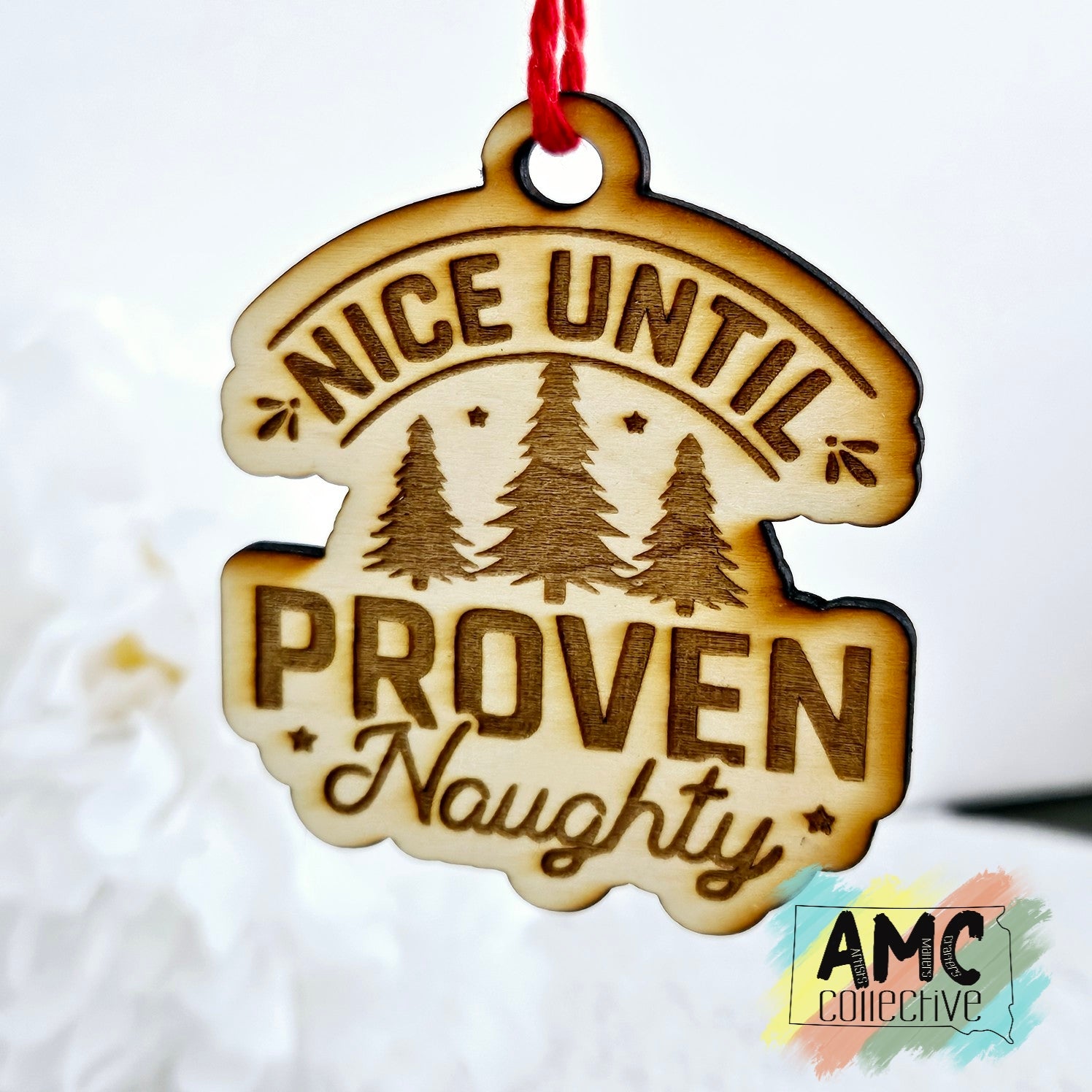 Nice Until Proven Naughty Wood Ornament