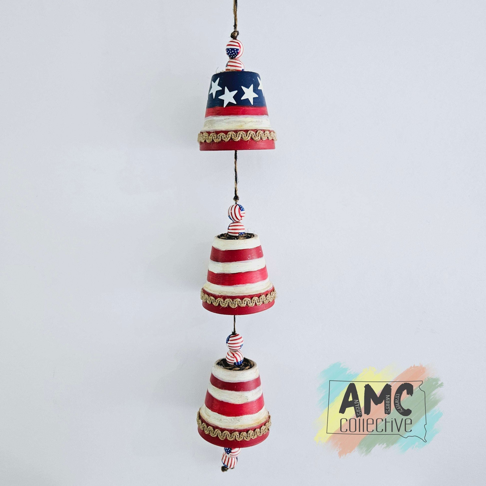 These brightly painted bells will add a touch of patriotism to any room. Let freedom ring with this playful decoration!