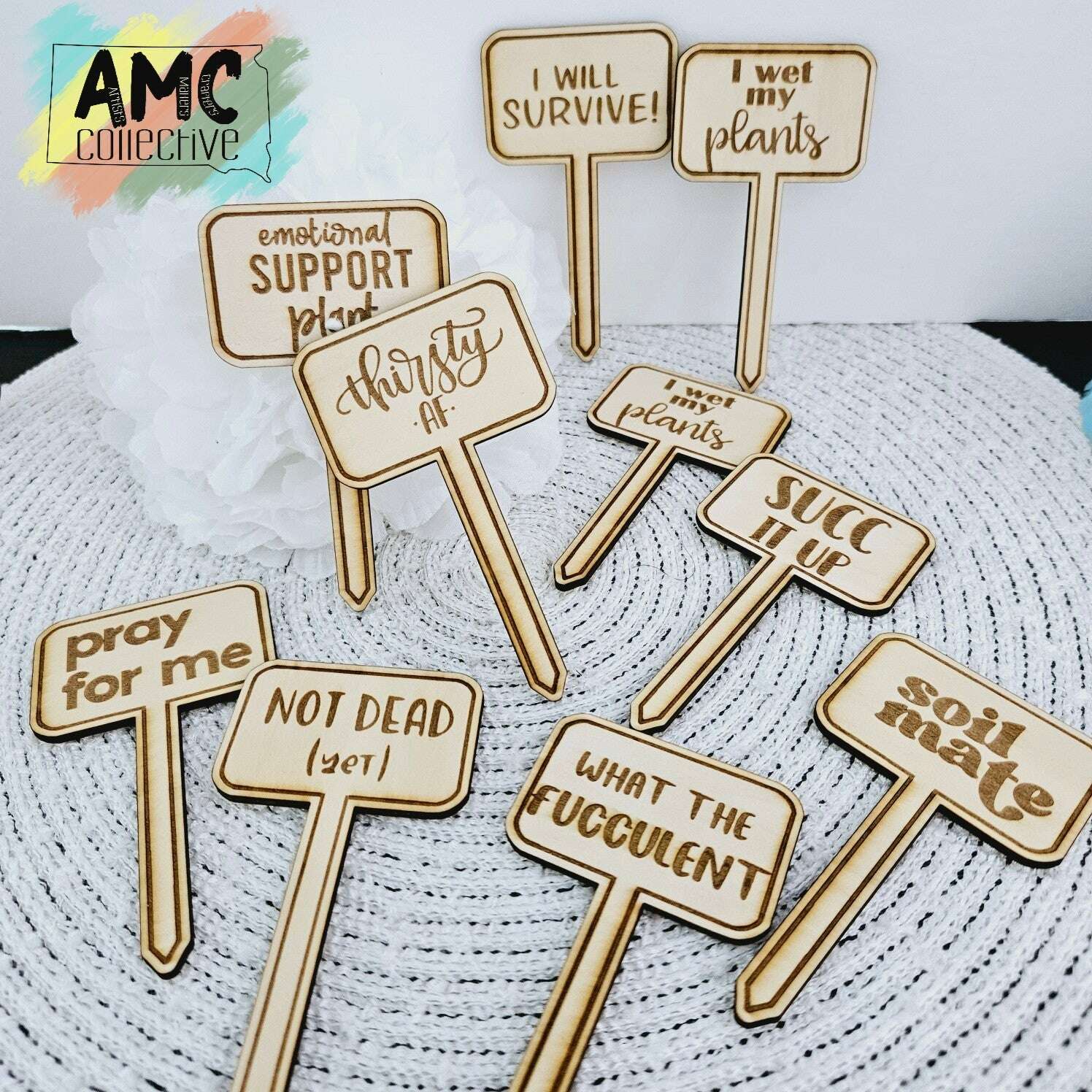 Elevate your garden game with our Plant Stakes. Made from high-quality wood, these stakes are both durable and whimsical. Engraved with witty plant puns, they are sure to bring a smile to your face while providing sturdy support for your plants. Perfect for any plant lover or garden enthusiast.