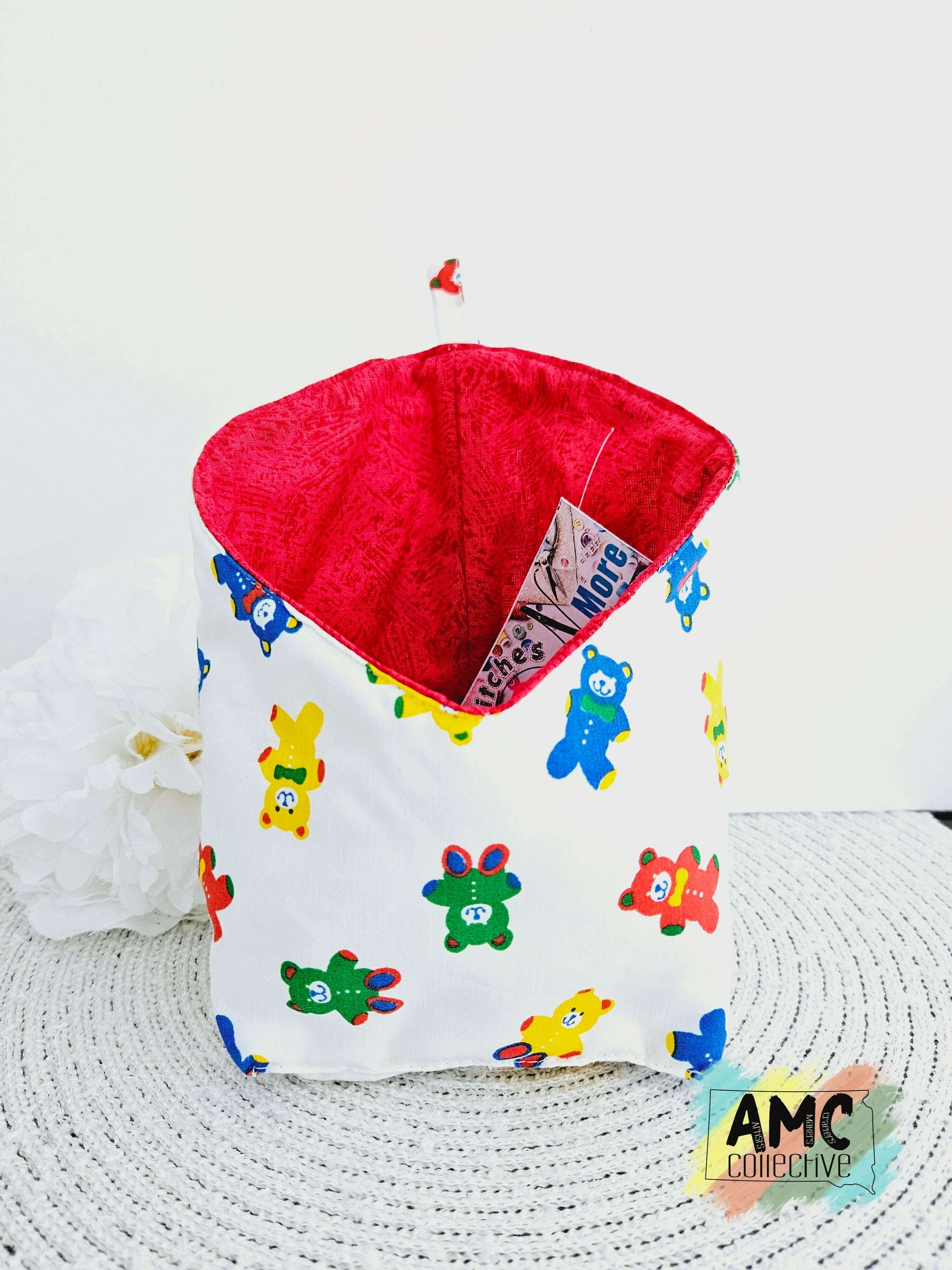 Keep your space organized and add a pop of personality with our patterned catch-all bag. Perfect for hanging and storing all your essentials.